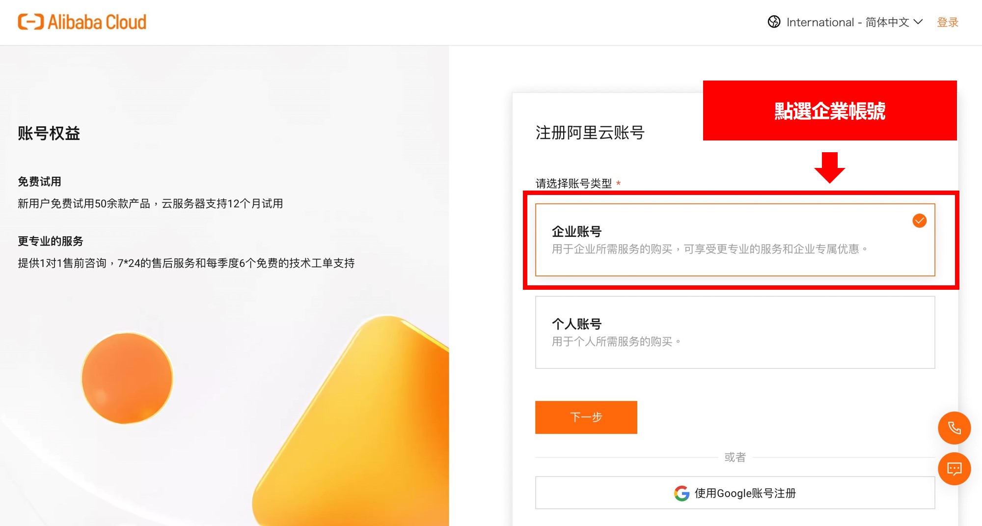 選擇企業帳號