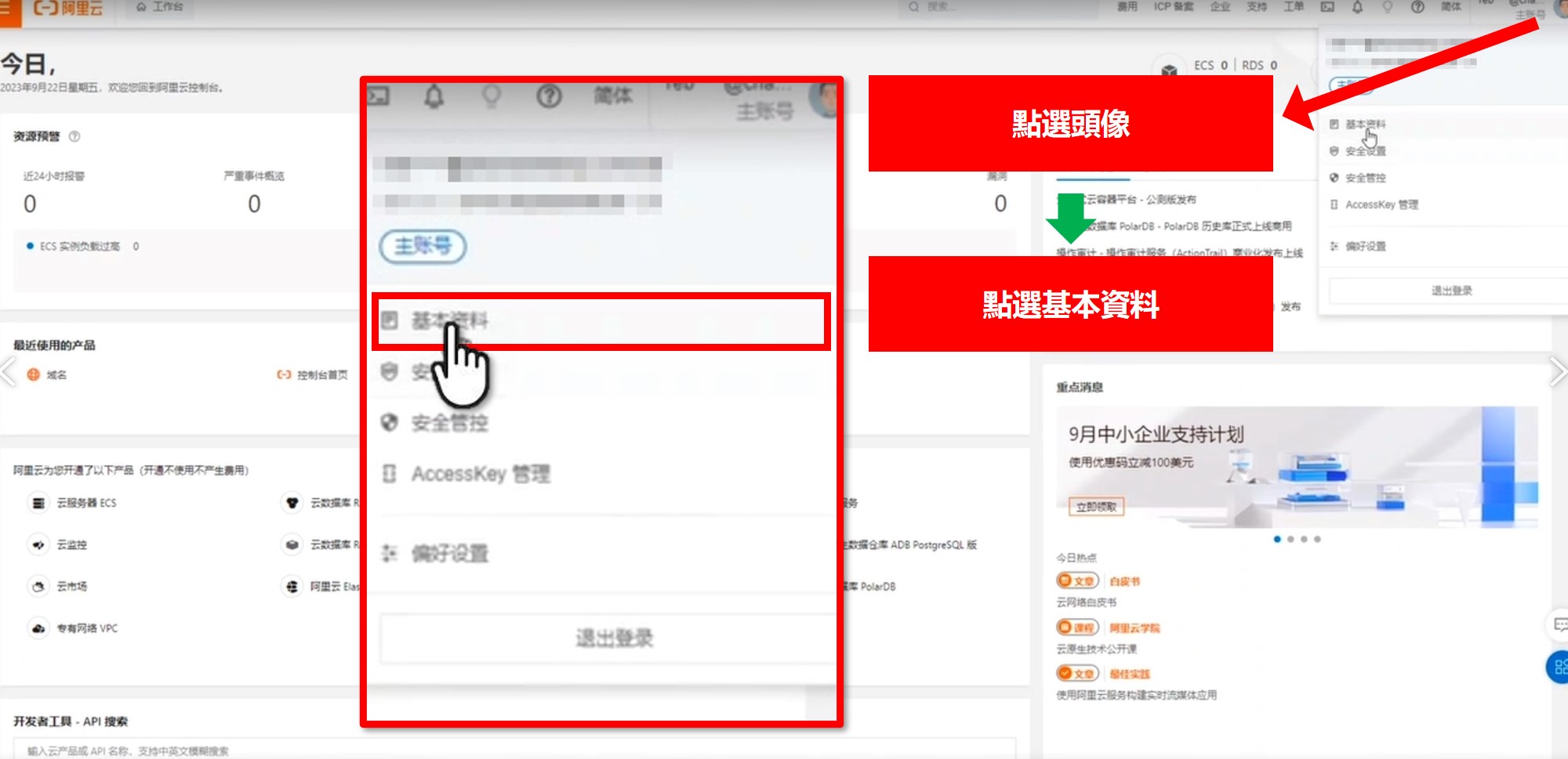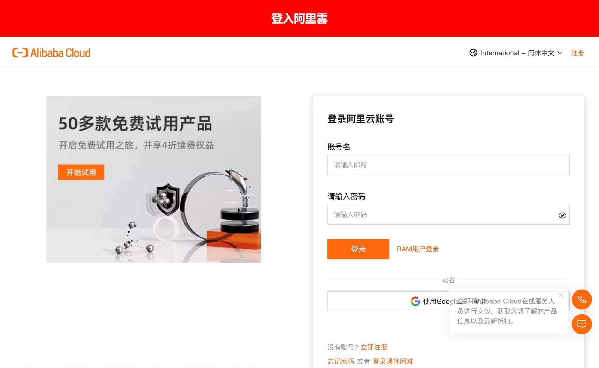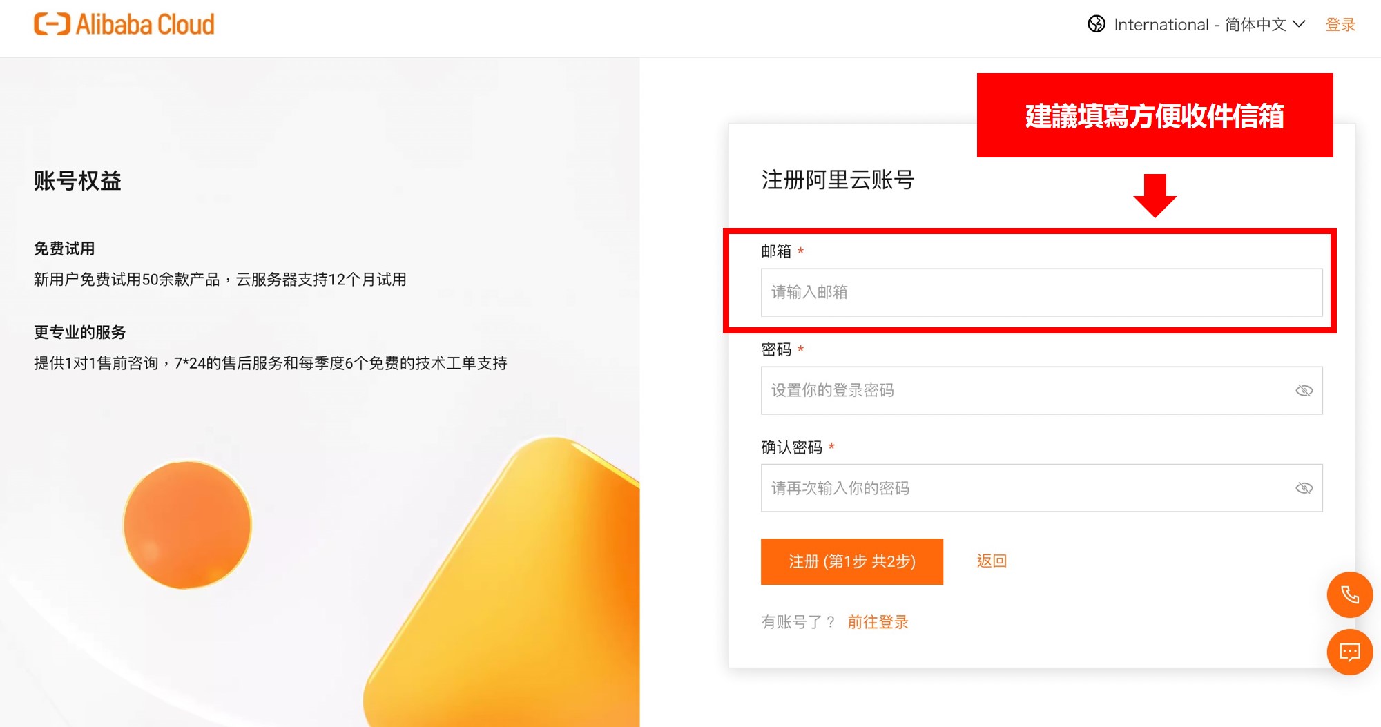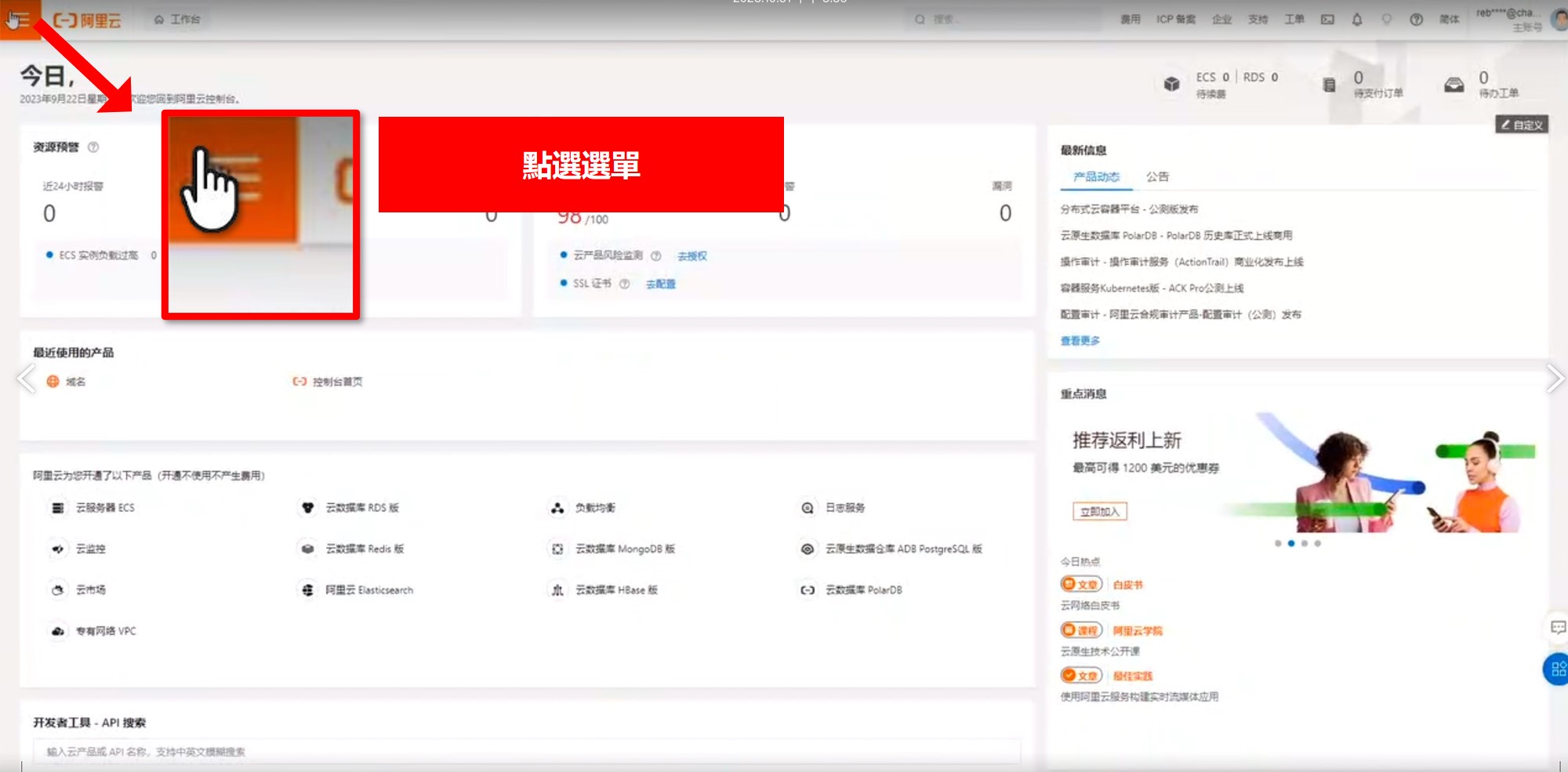 完成註冊後,登入阿里雲