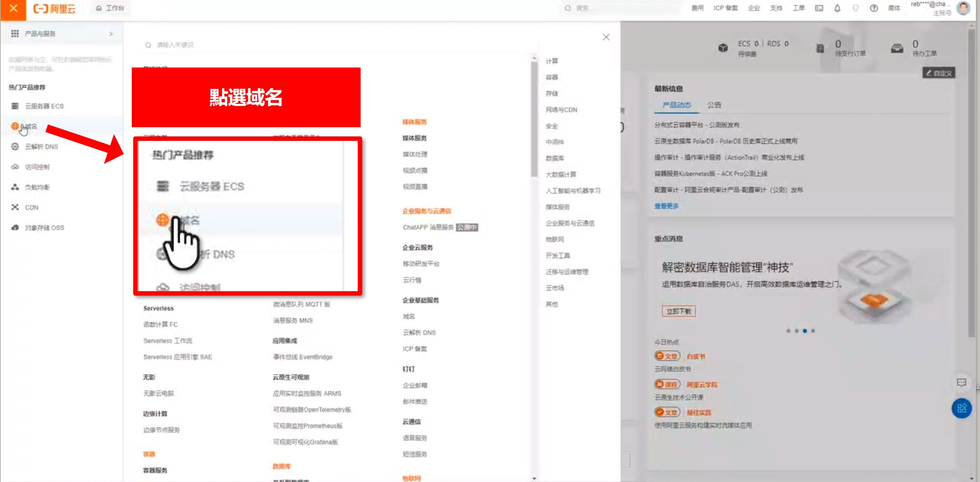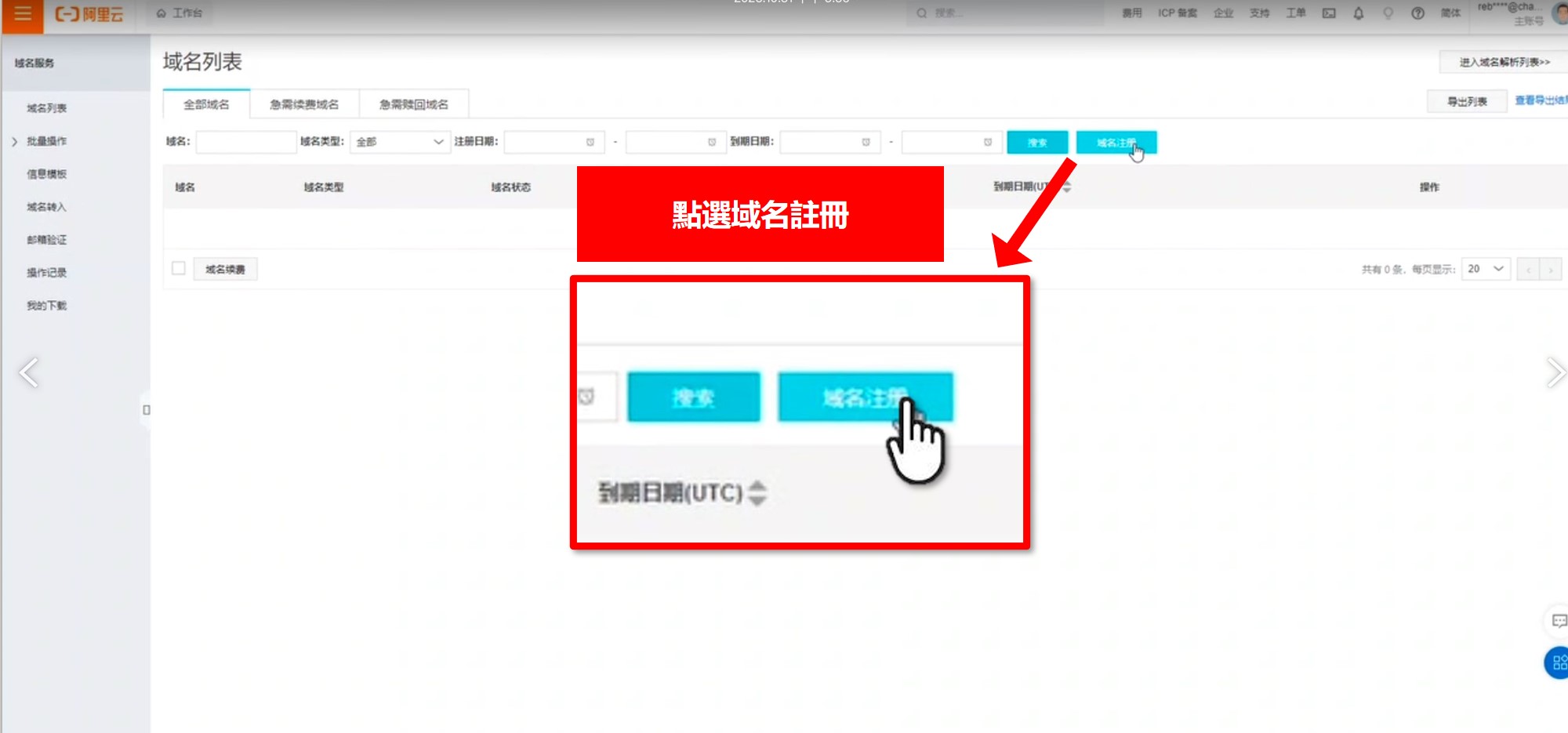 點選左上方橘色列表 → 域名