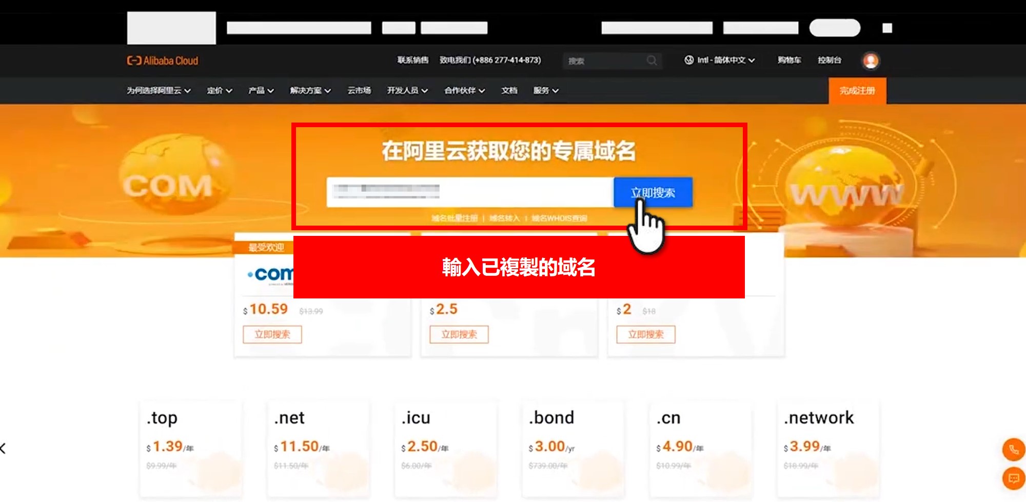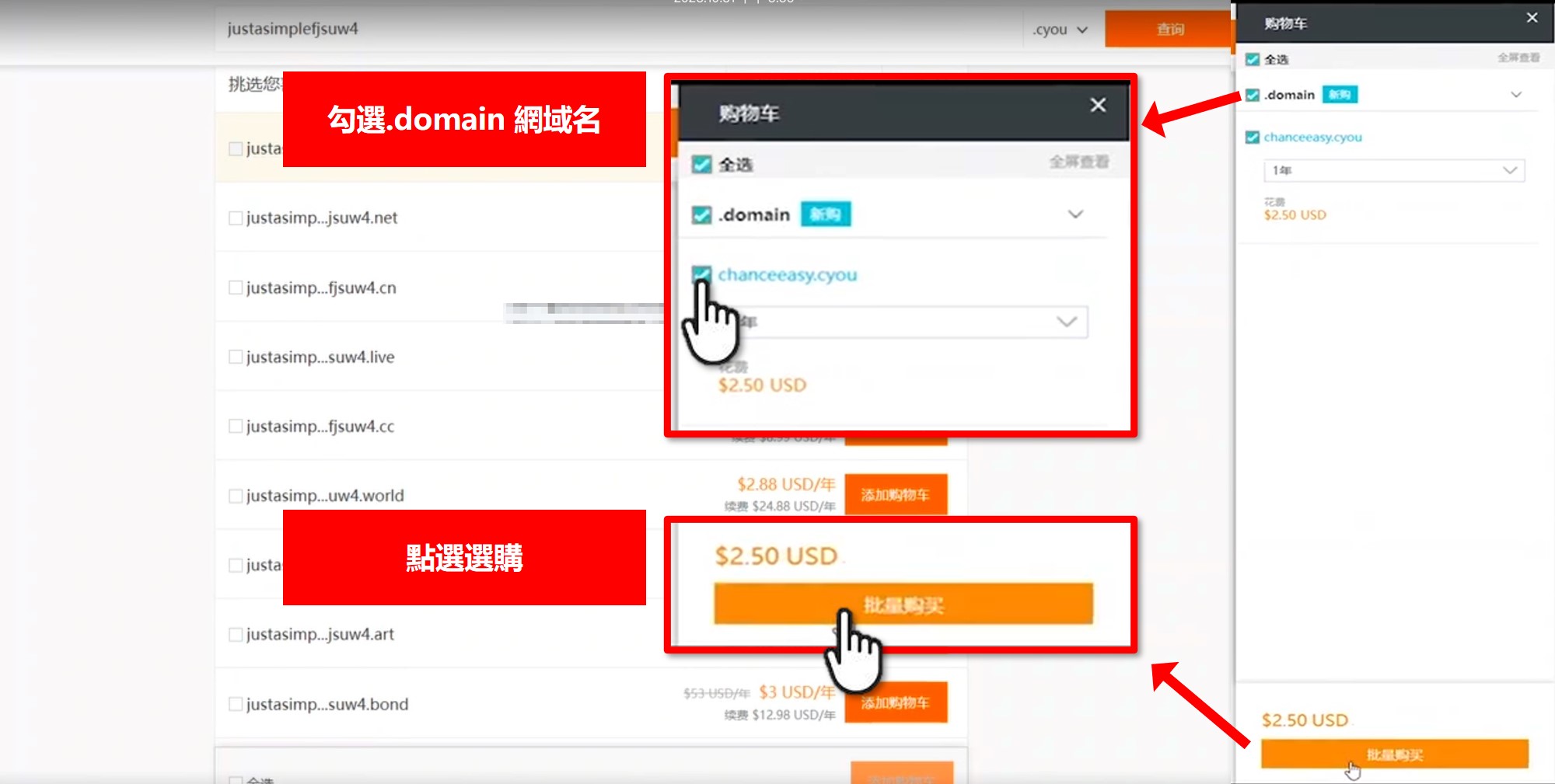 點選域名註冊 → 並選擇期望購買的域名