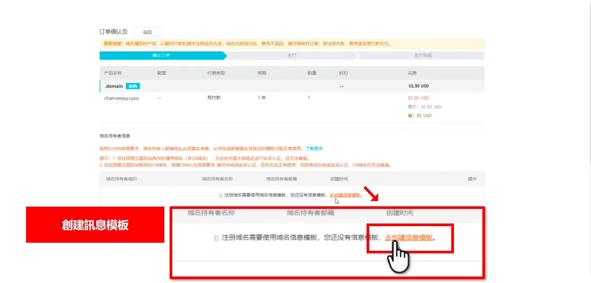 確認後點選下方 → 去創建信息模板