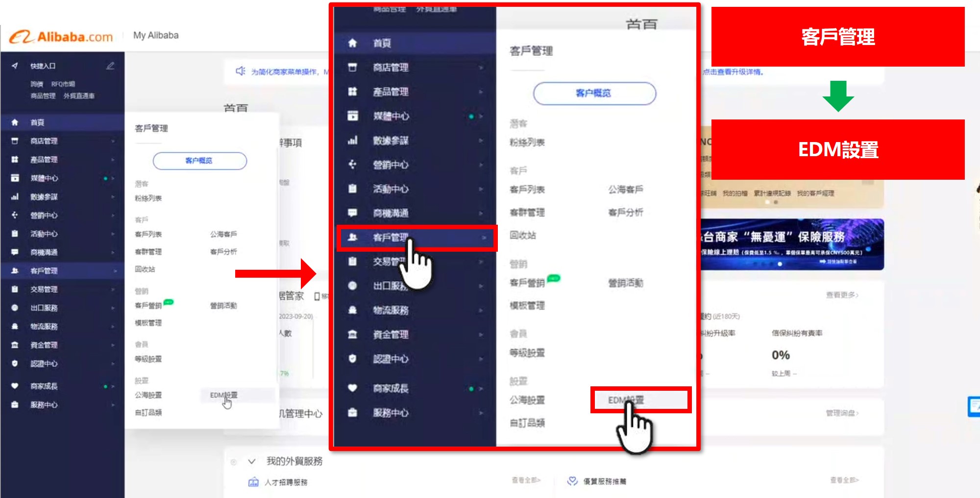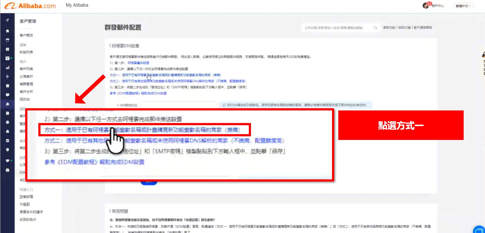 再回到阿里後台 客戶管理 → EDM設置