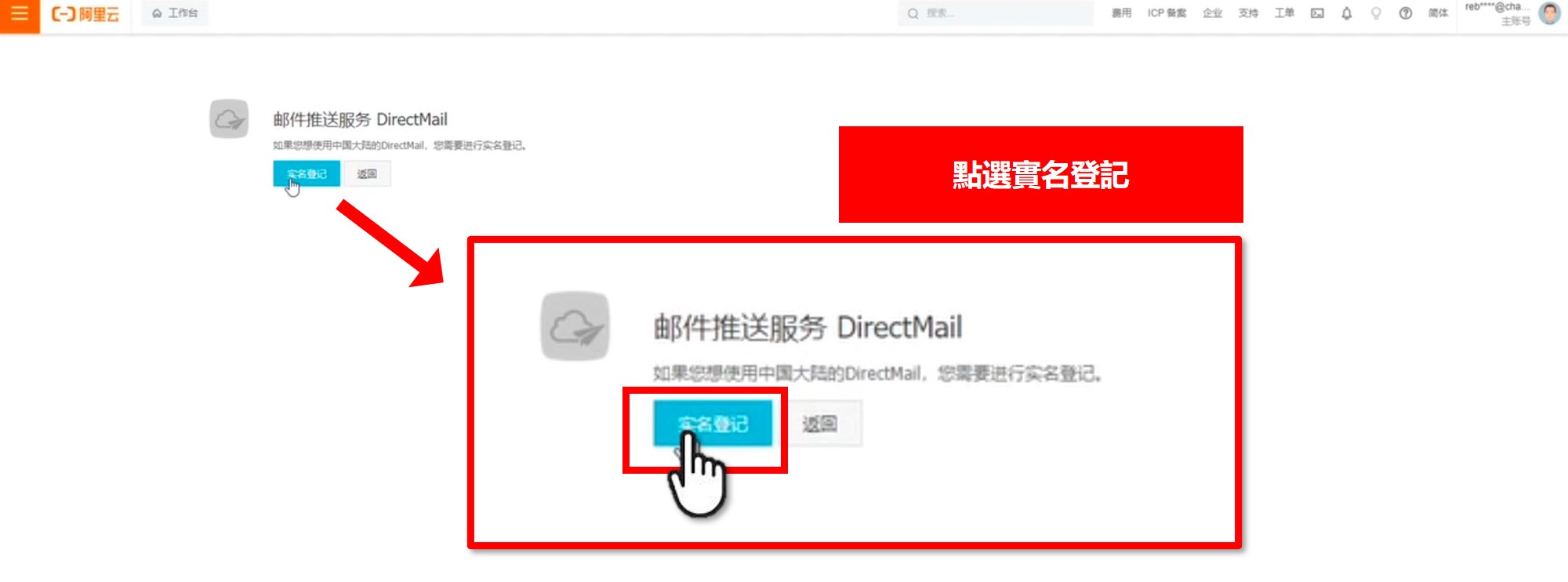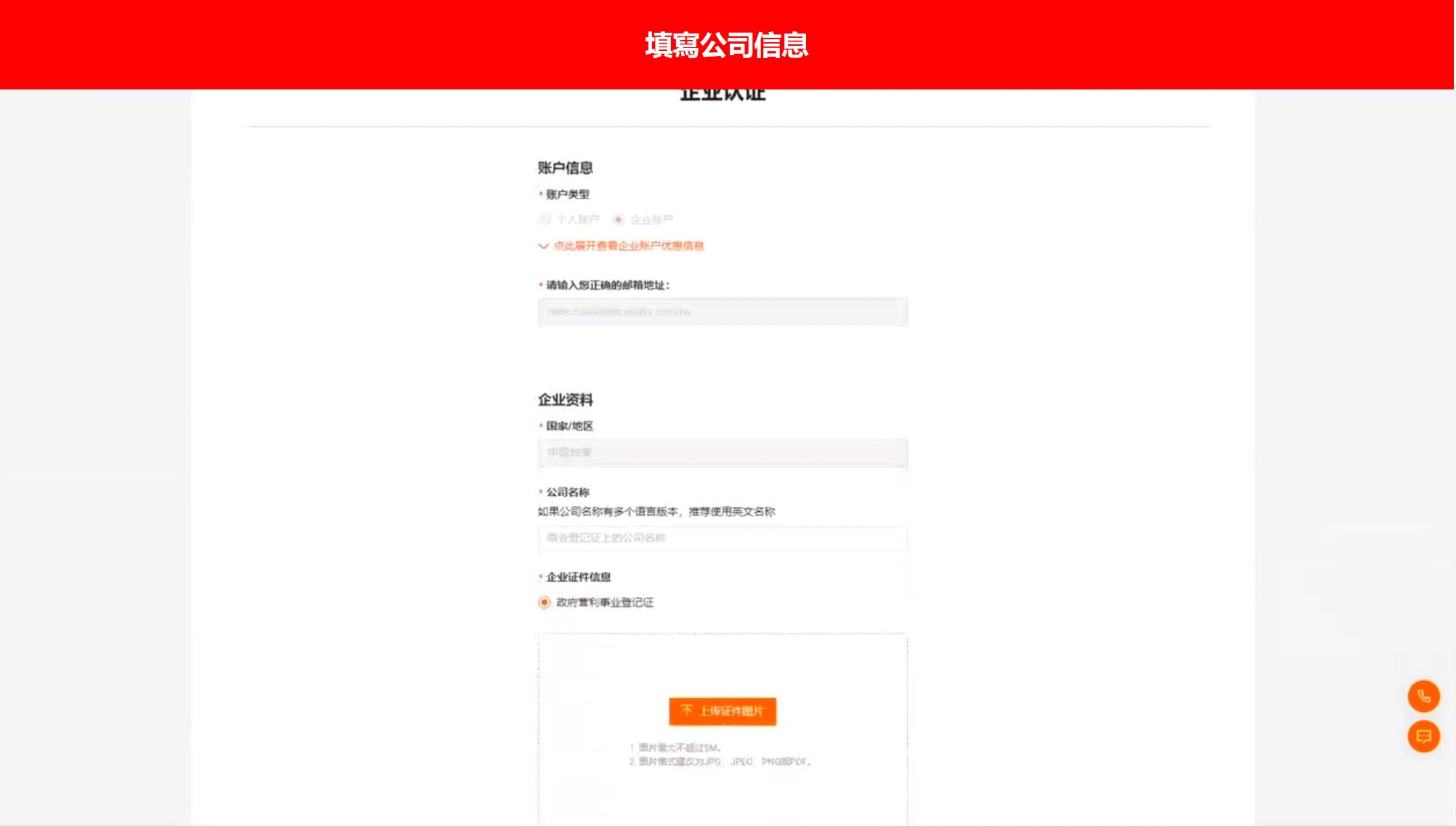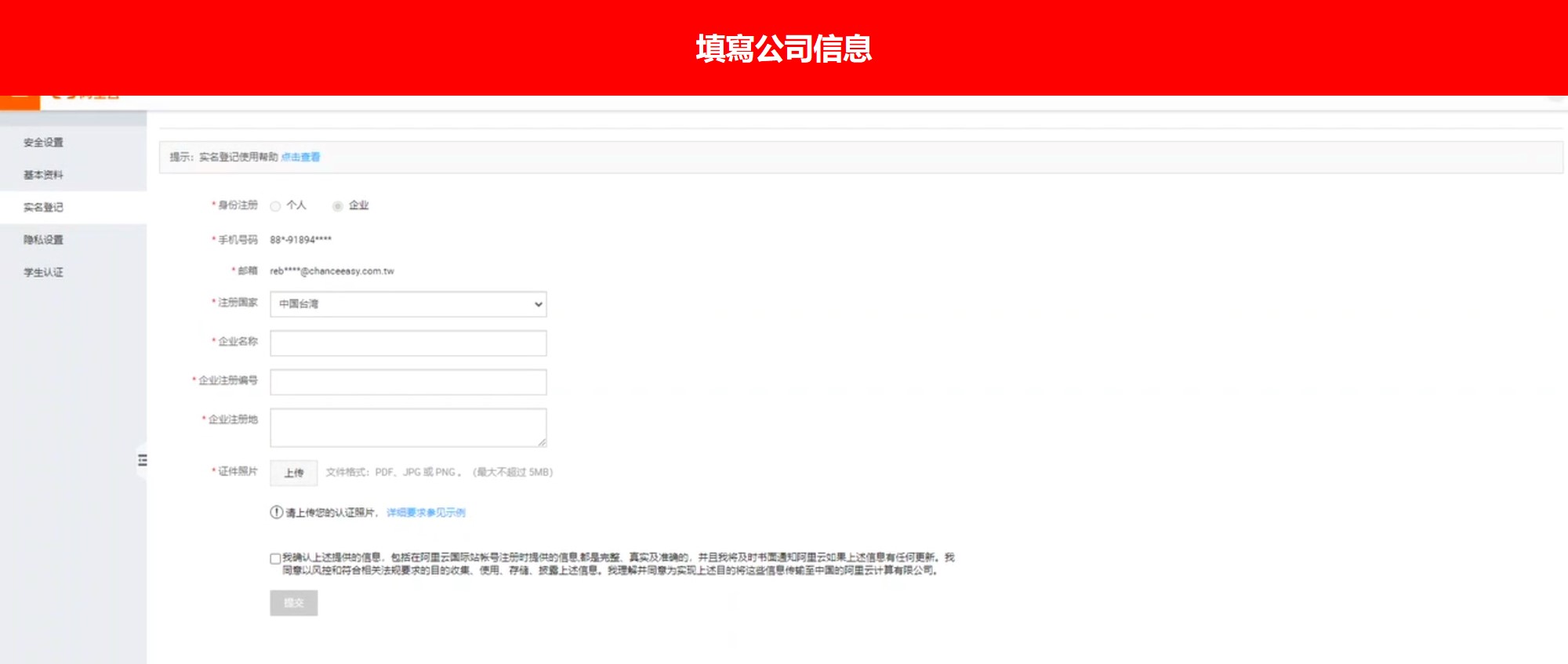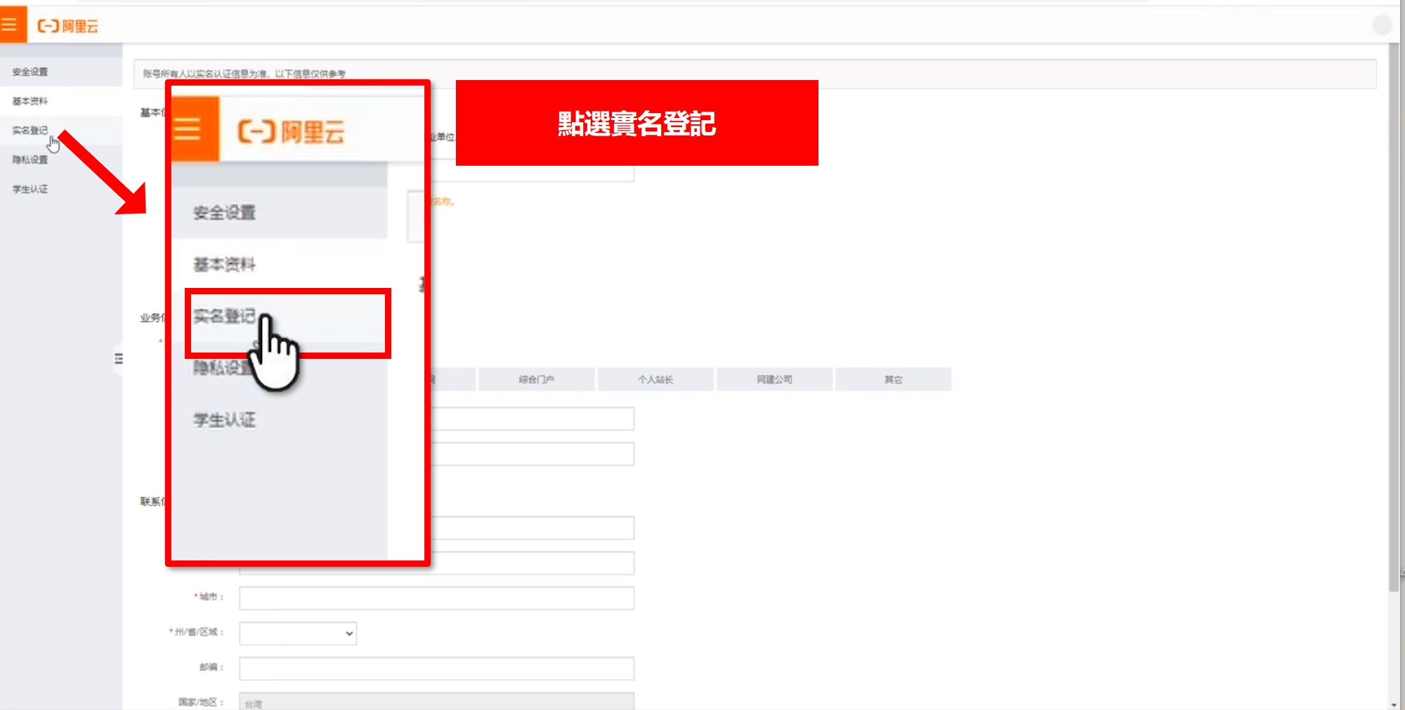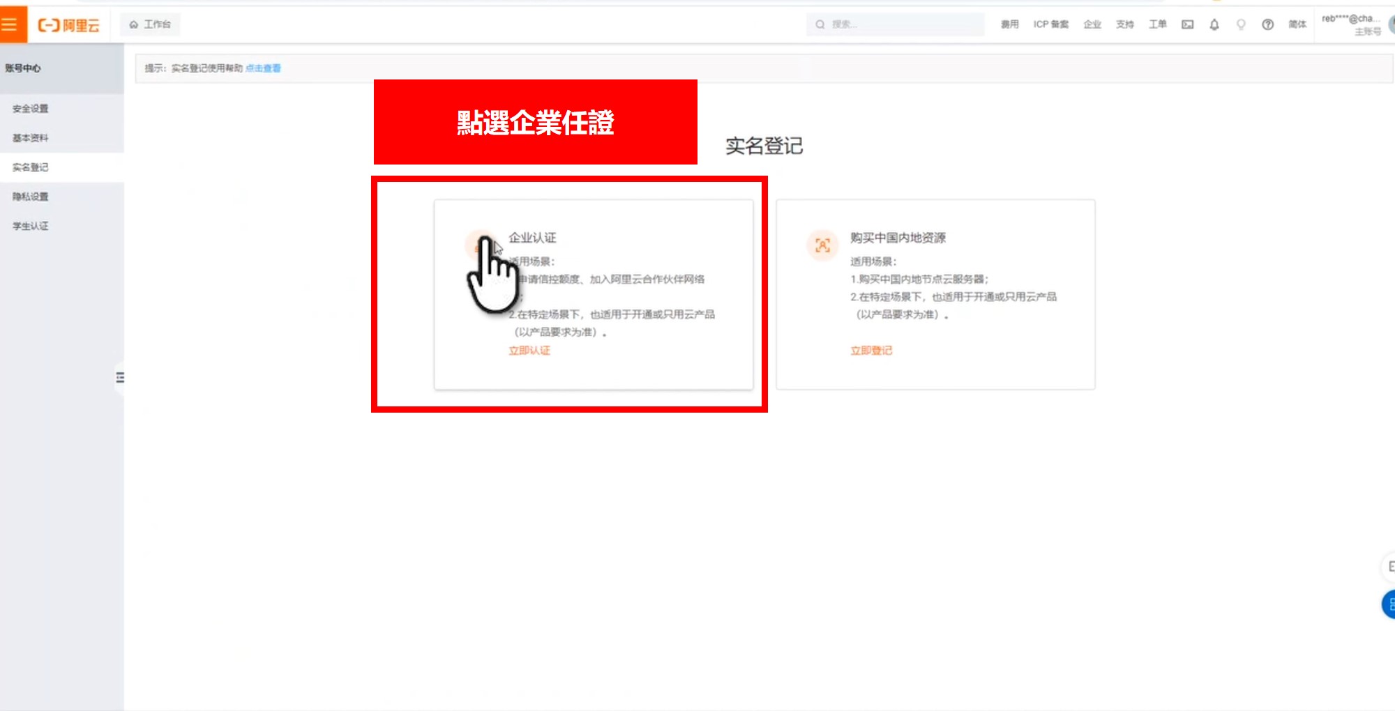 點選方式一 → 按下實名登記 → 填寫公司信息
