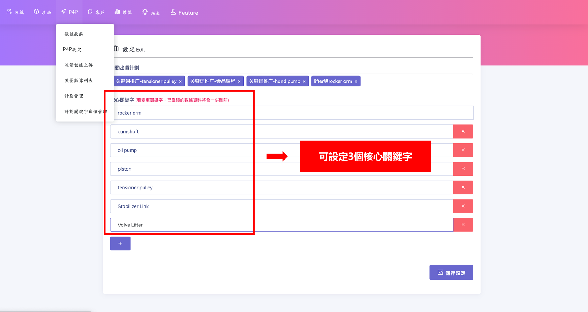 一、流程化容易入手 二、關鍵字類目自動比對 三、提醒功能