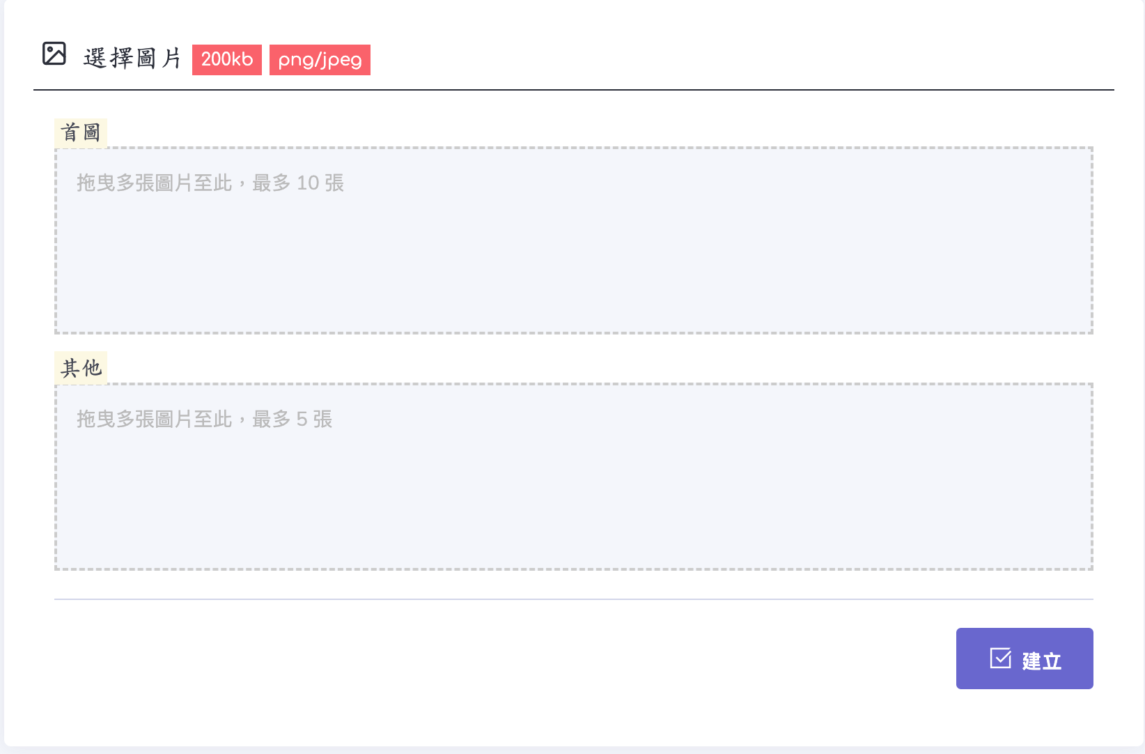 • 注意:圖片大小不得超過200kb。